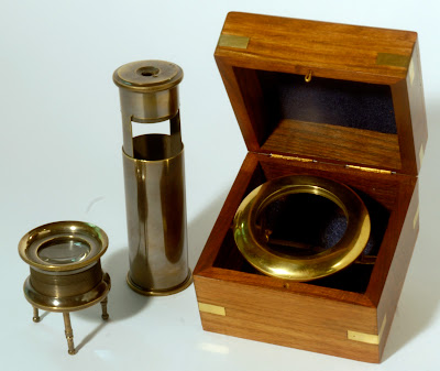 | Lente con treppiede in ottone € 30,00 – Microscopio ottone € 30,00 – Lente per carteggio con scatola di legno € 30,00 |