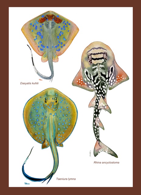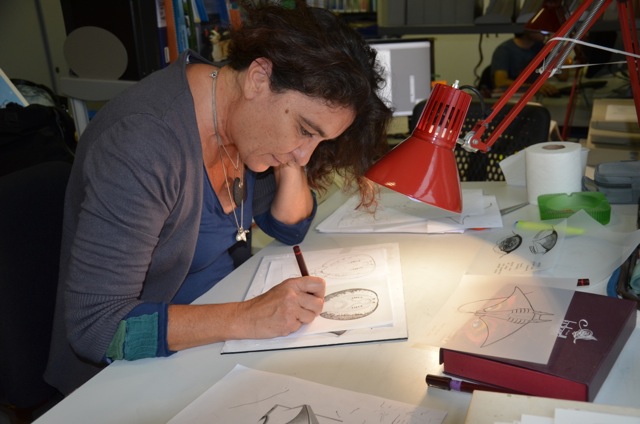 workshop. Lavoro sulle fotografie fatte dagli stessi autori delle schede, biologi, ittiologi o tassonomi, che per quanto precise siano non sono come avere il pesce davanti agli occhi. Sono obbligata a lavorare in maniera molto veloce, per completare un disegno ho a disposizione al massimo quattro ore, prima la matita, poi la china. In alcuni casi uso il colore, ma solo per le illustrazioni delle copertine o poster o di pubblicazioni particolari.