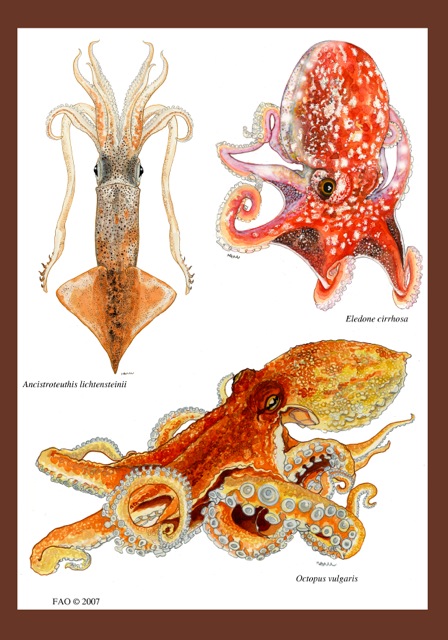 FAO, quindi probabilmente un’opera dell’illustratrice Emanuela D’Antoni in forza alla FAO dal 1984 presso il dipartimento del Programma della Pesca nel programma di Identificazione e Dati delle Specie Marine.