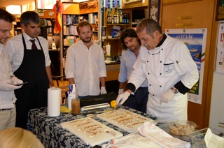 Indossata la classica “parannanza” e i guanti di latice gli “alunni” hanno fatto pratica alternandosi nelle varie fasi delle preparazioni
