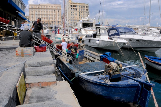 Prima di partire per una nuova lunga rotta di cinque mesi, vi racconto ancora una volta di Napoli, la città dove ho deciso di svernare, anzi di trasferirmi, come avrete forse letto nel precedente articolo. Complice della mia decisione di restare qui è stata anche la gentilezza e l’amicizia con cui mi ha accolto la grande famiglia che gestisce i posti barca della Coop. Servizi Nautici S. Lucia al Borgo Marinari. Inoltre in nessuno degli oltre cento porti del Mediterraneo dove sono passato in undici mesi di navigazione mi è capitata una tale professionalità: ogni volta che un’imbarcazione entra in porto, in un batter d’occhio si ritrova due ormeggiatori sulla coperta, uno su una lancia di legno, un altro sul molo, e non bisogna più pensare a niente, fanno tutto loro. Meraviglia.