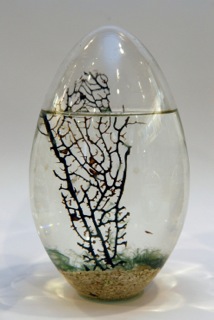 È un sistema chiuso quello dove vivono i gamberetti, una biosfera da cui niente esce o entra ad eccezione della luce. Non vanno nutriti né va cambiata l’acqua, soltanto una volta al mese va aperto per pochi secondi per permettere il rigenerarsi dell’aria al suo interno. Le microalghe producono il cibo e l’ossigeno necessari alla vita del gamberetto, che a sua volta produce la CO2 e le sostanze nutritive necessarie alla crescita delle alghe.