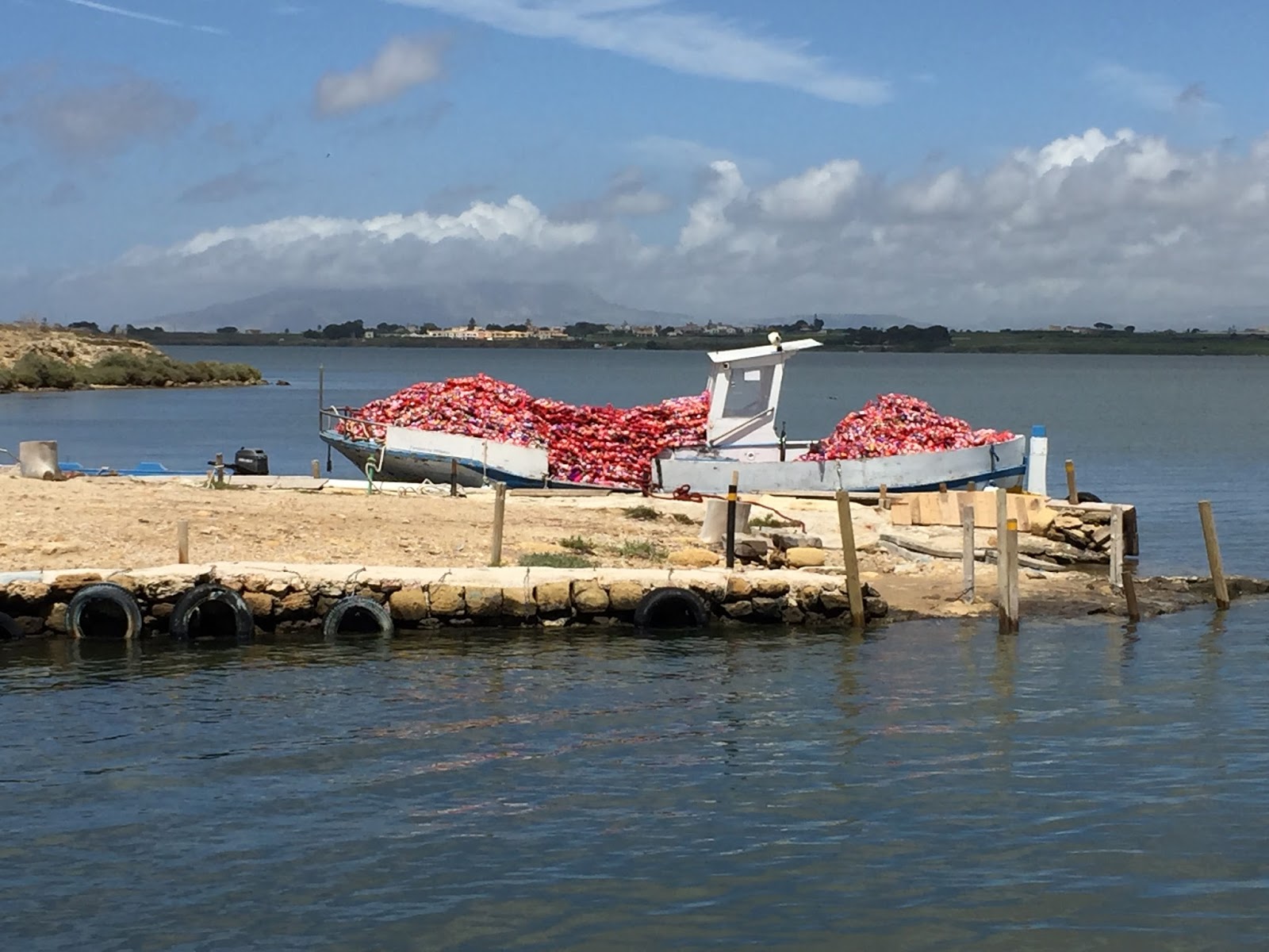 Help, l’Età della plastica, visibile soprattutto di notte anche dagli aerei che sorvoleranno lo Stagnone di Marsala, Sicilia nord occidentale. L’ha ideata l’artista Maria Cristina Finucci creando un cortocircuito visivo e concettuale tra le