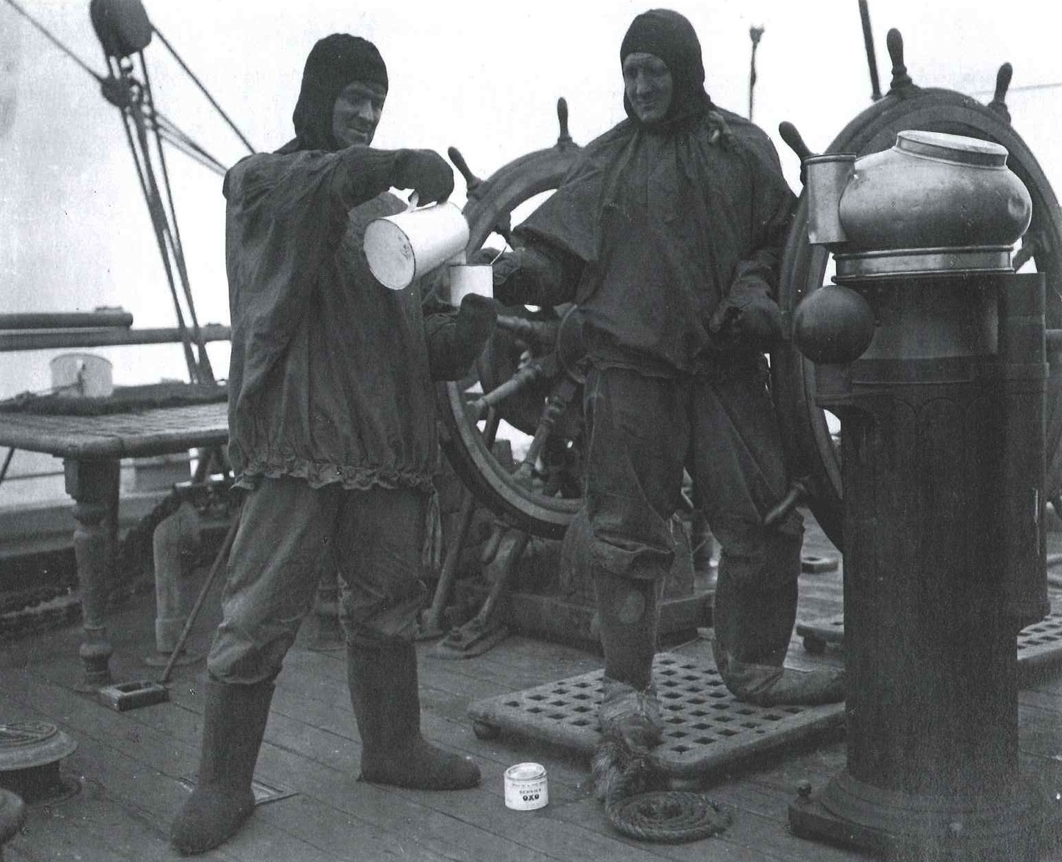 La foto a ds fu utilizzata per fare pubblicità alla LiebigAnnotò con eguale attenzione le piaghe che il freddo disegnava sui volti degli esploratori di ritorno dalle missioni più faticose, o i caratteri indomabili degli husky che trascinavano le slitte. Documentò i tramonti e tempeste, le bizzarre forme degli iceberg e le imprevedibili creste di pressione della barriera ghiacciata. Ma fu altrettanto preciso nel testimoniare la vita quotidiana degli esploratori; le attività più umili come il rammendare i sacchi a pelo o accudire gli animali lo attrassero quanto le scalate delle montagne di ghiaccio; fermò lo sguardo su compiti più elevati, quali l’osservazione delle stelle, l’analisi al microscopio di forme sconosciute di vita; seguì la Terra Nova mentre spaccava il ghiaccio marino per conquistarsi una via verso il Sud o la ritrasse immobile nella baia di fronte all’isola di Ross, come una balena spiaggiata su una costa dalla quale non sa più allontanarsi.