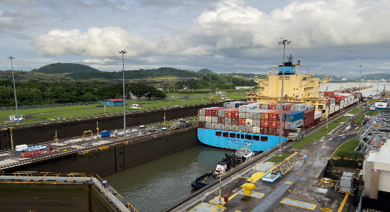 Se questo accade per Suez, la situazione non è rosea anche per il canale di Panama, in quanto gli effetti della crisi climatica ne rallentano di molto l’utilizzo, e ciò per il tipo di funzionamento Quello che chiamiamo canale di Panama, in realtà non è un vero e proprio canale. Il collegamento tra l’Oceano Pacifico e l’Atlantico non è diretto tra le due sponde, bensì le navi vengono sollevate dal livello del mare e, dopo una navigazione in un bacino artificiale, vengono fatte discendere al livello del mare sull’altro Oceano. E ciò per superare le alture del Panama, una volta Colombia, prolungamento della catena andina verso il Nord America. Quindi sono stati realizzati due impianti di risalita e discesa, uno per il lato Atlantico e l’altro per il Pacifico. Ognuno di essi è composto da 6 bacini, posti a tre a tre su due differenti vie, con salti di livello di circa 9 metri tra ciascuno di loro, per consentire alle navi, sia in salita che in discesa, di superare il dislivello totale di circa 27 m dal livello del mare alle due imboccature al livello dell'acqua nel punto più elevato del canale. Questo dislivello è dovuto alla maggiore altitudine del fondo artificiale lungo l'opera che, per motivi tecnici, ed economici, non poté essere scavata del tutto sino a renderla navigabile al livello del mare.