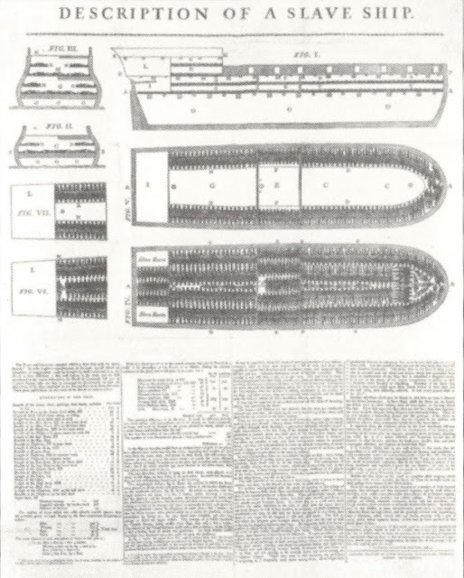 come veniva usato il gatto a nove code con violenze di ogni tipo e lo stupro sistematico delle prigioniere; come il mal di mare, le malattie e l’elevata mortalità colpisse tanto gli schiavi che gli stessi marinai. Per ottimizzare il carico agli uomini toccava uno spazio di 183 per 40 centimetri, ai ragazzi 152 per 35, alle donne 175 per 40, alle ragazze 122 per 35. Quando nel 1808 la Gran Bretagna e gli Stati Uniti abolirono il commercio degli schiavi, le navi negriere avevano trasportato nove milioni di persone, altri tre milioni arrivarono in seguito. le sole navi inglesi e americano nel corso del Settecento ne trasportarono tre milioni.