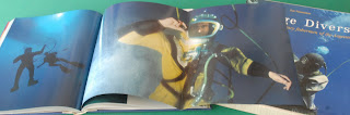 Sponge Divers, questo è il titolo, che ha un formato magnum, trentacinque centimetri in larghezza per quarantacinque in altezza, per la stampa è stata usata una carta da trecento grammi, la stessa che si usa per la stampa dei poster! Il risultato e che il libro pesa quasi sette chili, più del doppio di un qualsiasi altro libro di quel formato e con lo stesso numero di pagine. Quindi per portarvelo a casa venite in libreria muniti di una sacca resistente, oltre che di duecentonovanta euro, tanto costa!