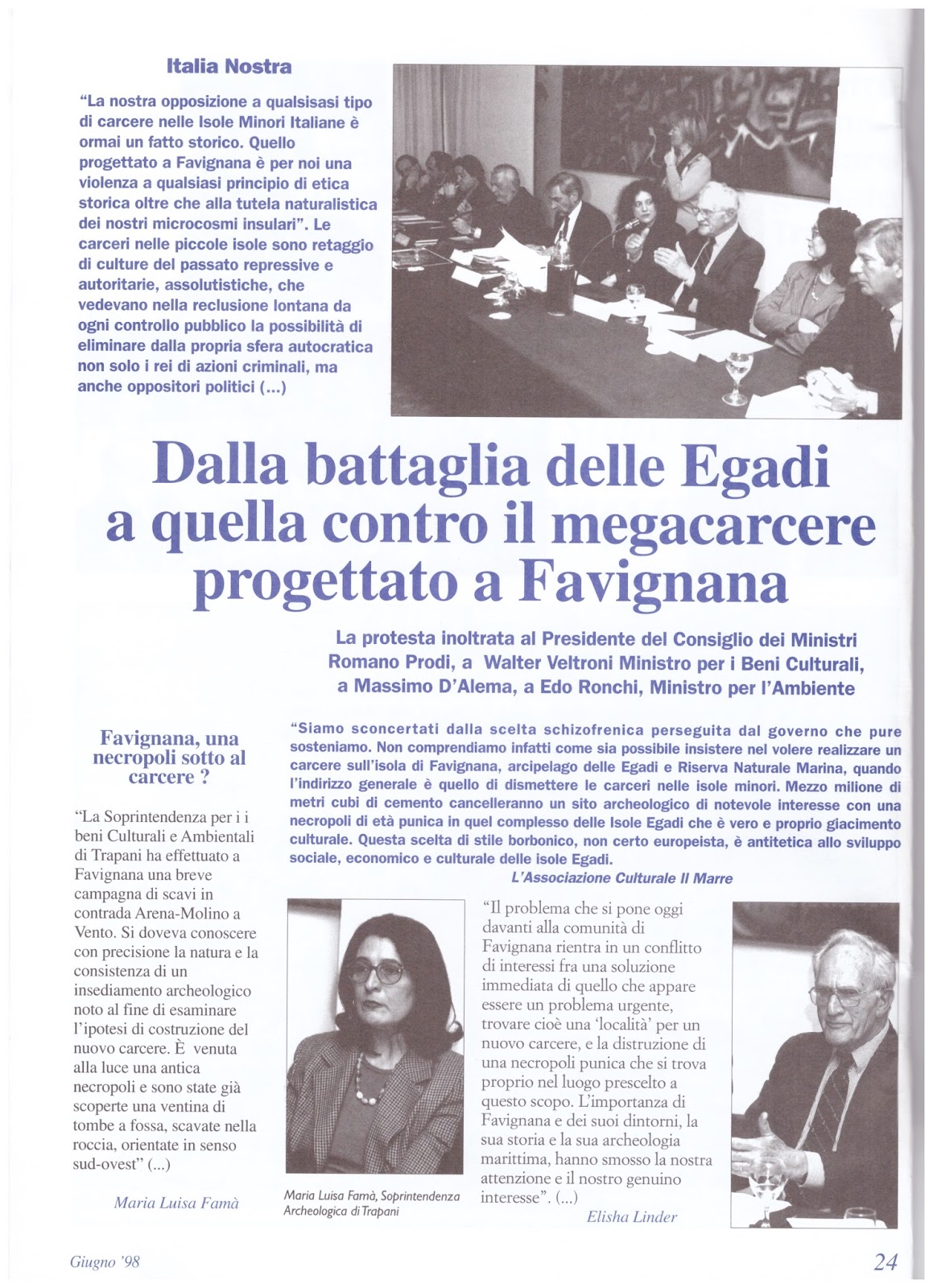 Il dibattito sul carcere appassionò gli abitanti e gli intellettuali con scontri anche fisici. Si organizzò un convegno a Roma con la presenza di Sebastiano Tusa ed Elisha Linder, ma anche con alcuni Senatori della Repubblica Italiana, per evitare la costruzione di un altro carcere a Favignana. Molti incontri e dibattiti furono organizzati per chiedere alla Regione Sicilia, il restauro dello Stabilimento Florio. Gli esperti di pesca del Tonno, Di Natale, Piccinetti, Sarà, illustrarono le nuove ricerche sul tonno e aprirono ai tonnaroti, la prospettiva di costituire una cooperativa di pesca, per avere le redini della Tonnara. In quegli anni, lo stato italiano e l’Agip, pensarono bene di cercare il petrolio proprio in questo paradiso marino e istallarono una piattaforma petrolifera tra Favignana e Marsala. Nino Allegra, Gin Racheli, Maria Guccione e la sottoscritta fecero convegni, scrissero articoli, coinvolsero studiosi e ambientalisti così che le piattaforme furono smantellate.