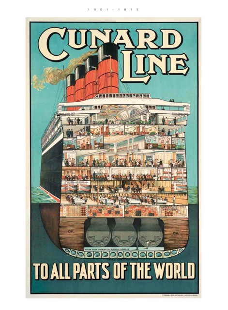 Un libro che attira non per il suo grande formato ma perché racconta con più di cento “manifesti navali”, manifesti pubblicitari paragonabili ai 6x3 dei nostri giorni, la storia straordinaria delle compagnie marittime nel XIX secolo e dei loro transatlantici dai nomi mitici come il Titanic, il Conte di Savoia, l’Imperator, l’Elisabethville, il Majestic, il Normandie, l’Atlantique, il Queen Mary, il New Amsterdam.