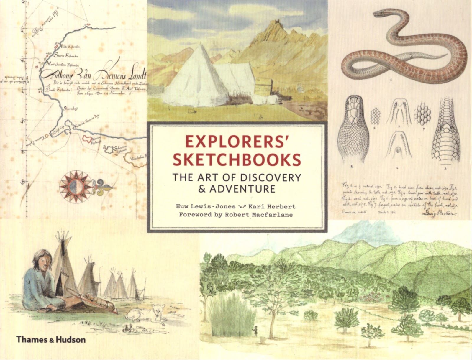 The Art of Discovery & Adventure lo è altrettanto. Presenta la raccolta, quasi un archivio, di settanta diari, gli sketchbooks dei veri pionieri dell’esplorazione, cartografi, botanici e artisti, ecologisti e antropologi. Uomini e donne, eccentrici e visionari, che negli ultimi due secoli con la loro Wild Art, in italiano letteralmente arte naturalistica – un modo di vivere la natura, en plain air, per gioire della bellezza dei paesaggi e degli animali – hanno permesso la possibilità di condividere, attraverso i loro occhi e pensieri, viaggi in lande ghiacciate, alte montagne, aridi deserti e foreste pluviali. Alcuni sono molto conosciuti, come ad esempio il capitano Robert Scott, Charles Darwin, Thor Heyerdahl e Abel Tasman; altri sono sconosciuti, tra cui Adela Breton, che ha sfidato le