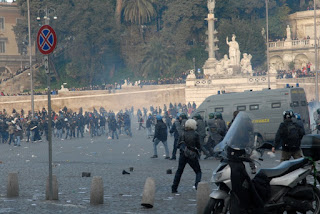 Grande Enciclopedia dei Molluschi, Crostacei e Ricci di mare prevista per le 19, ma non ci siamo arresi e la nostra fiducia è stata premiata. Avete visto cosa è successo, no? Intorno alle 18 però, è tornata la calma, anche se irreale, il fumo dei lacrimogeni si è dissolto, piazza del Popolo è tornata praticabile, così come le strade del Tridente, le più colpite, anche se via di Ripetta, dove siamo noi, è rimasta per fortuna fuori dagli scontri più violenti.