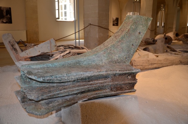 Infatti sappiamo che le grandi famiglie romane acquistavano o producevano i rostri a loro spese, e che li montavano sulle navi che loro stessi fornivano, dimostrando così la loro partecipazione diretta all’impresa. La tipologia dei rostri è detta a tridente che nasce quasi sicuramente in oriente, si sviluppa per tutta la romanità e segue quello che prima era il rostro a pungiglione di cui però non abbiamo riscontri diretti, cioè a semplice sperone ed era a perdere, penetrava nella nave nemica e restava come il pungiglione di un’ape. Nel V e IV secolo nasce il rostro a tridente che ebbe una fortuna eccezionale per la capacità contundente e perché taglia con i suoi fendenti orizzontali. Quindi provocava una ferita mortale anche perché il rostro era sotto il pelo dell’acqua. Sono in bronzo, lega di rame e stagno. Dopo queste scoperte sono usciti fuori altri rostri; uno al Museo del Pireo dimenticato in qualche magazzino e che ora è esposto; poi quello di Bremenafen, certamente di provenienza mediterranea, nel momento in cui abbiamo chiesto dati per studiarlo lo hanno nascosto e lo hanno mandato a Magonza; è in atto una rogatoria internazionale per riuscire ad averlo, per farlo tornare in Italia; un altro, grande come quello di Atlit, è stato sequestrato in Toscana presso la casa di un ’ndraghista, si chiama rostro di Follonica ma non si sa da dove viene si trova anche se è a Pisa in restauro, contiamo di averlo presto qui a Trapani; Infine è uscito fuori un rostro dalla Libia che era stato trovato in Cirenaica da un sommozzatore inglese che se l’era portato a casa sua a Oxford. Quando si sono resi conto di cosa si trattasse lo hanno restituito alla Libia, probabilmente è un proembolon, uno strumento in bronzo con una testa d’ariete che serviva per frenare la penetrazione del rostro nella nave nemica, se fosse penetrato troppo poteva non uscire, rimanere incastrato bloccando la nave assalitrice. In Italia c’è né uno esposto al Museo di Torino e uno a Genova.