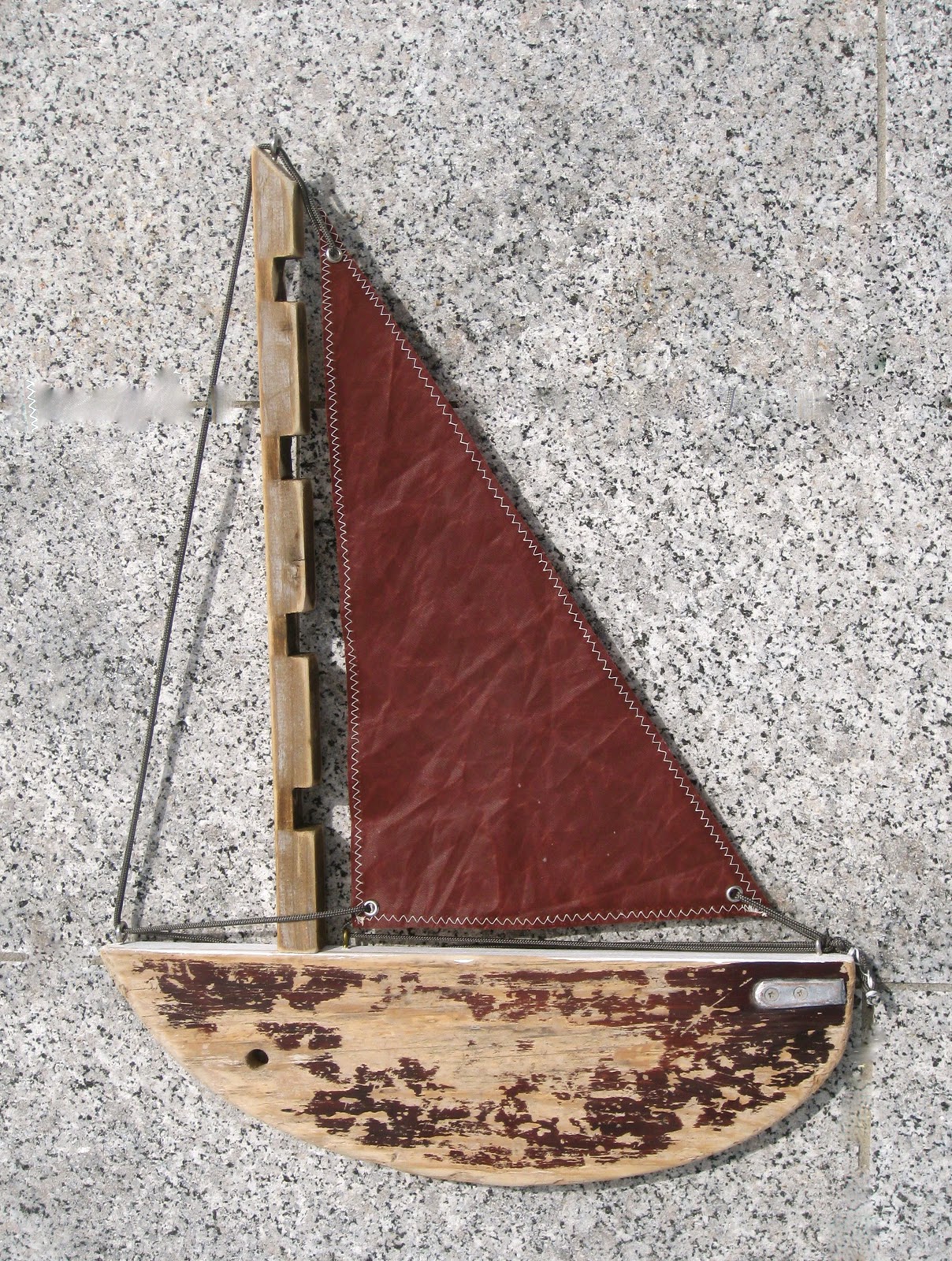 Purtroppo – continua – trovo i legni che mi servono in cataste dove prevale la plastica. A volte setaccio per ore una costa senza trovarne nemmeno uno di quelli che mi possono servire. A casa ho una stanza dove accumulo tutto quello che trovo, poi quando individuo un legno che somiglia a uno scafo lo assemblo con un altro che ho trovato chissà dove e che somiglia a un boma o a un albero. Utilizzo vele usate o quelle di Mike o del centro velico di Caprera, le taglio e il velaio mio amico me le cuce con lo zig zag e ci mette gli anelli.”