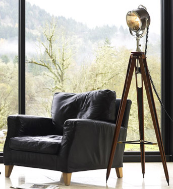 È l'esatta riproduzione di una faro da ricerca degli anni '40 che veniva utilizzato sulle navi da guerra, ma non solo, per la ricerca di oggetti ostacolo alla navigazione o magari di un uomo caduto in mare. La lampada creava un fascio di luce concentrato di elevata intensità per illuminare una superficie da grande distanza. Il nostro faro invece è un oggetto d'arredamento, dal marcato carattere nautico, lavorato in ottone cromato. È fissato su un treppiede da cartografo in legno nero completo di bussola e misura in altezza due metri. Ha la caratteristica di un oggetto di lusso costa infatti 780 euro