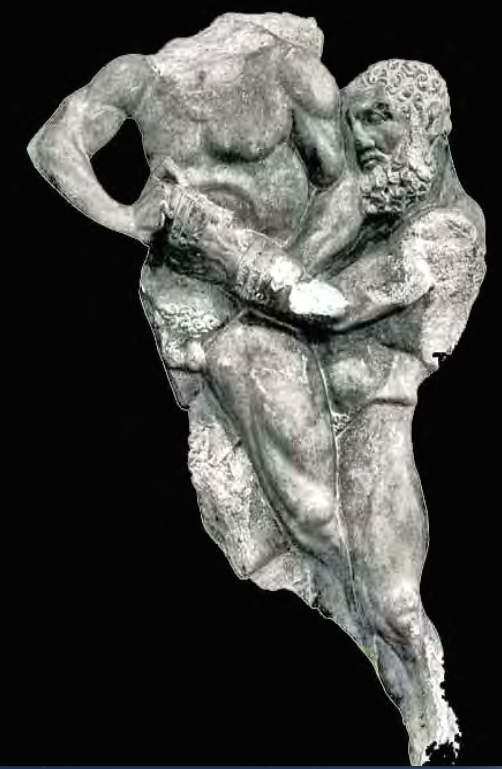Sezione IV - Il commercio e il traffico d’arte dei romani: Dopo la sconfitta di Cartagine in seguito alla Prima Guerra Punica, la Sicilia divenne provincia romana, trasformandosi in granaio di Roma e fonte principale di approvigionamento , anche illecito, di statue e preziosi manufatti artistici , destinati all'elite affamata d'arte della fiorente città.Reperti particolari quali la zampa bronzea d'elefante a grandezza naturale dal Canale di Sicilia, il gruppo Ercole/Anteo testimoniano il flusso di prodotti artistici diretti in Sicilia, porto di richiamo per tali merci.