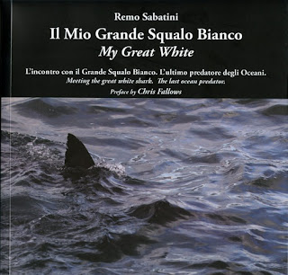 Il mio grande Squalo Bianco, My Great White, che Sabatini ha scritto, prodotto, stampato e che distribuisce personalmente stile “ciclimprop” degli anni ’60. Un libro essenzialmente fotografico che descrive “L’incontro con l’ultimo predatore degli Oceani” in poco meno di cento pagine con brevi testi, anche in inglese, frutto delle sei spedizioni che ha compiuto in Sud Africa negli ultimi due anni.