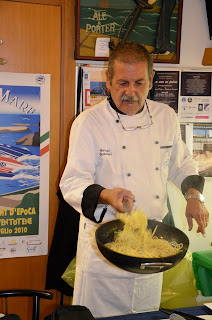 Della freschezza del pesce ne abbiamo già parlato nel precedente post dedicato alla pescheria “Meglio Fresco” e al suo vulcanico “animatore” oltre che proprietario Arturo Scarci. Se non ci avesse fornito, come sponsor, il pesce crudo preventivamente trattato con l’abbattimento (surgelazione rapida a meno 20 gradi), unico sistema per neutralizzare il pericoloso anisakis, non avremmo potuto gustare i deliziosi carpaccio di orata e la tartare di sauro. |