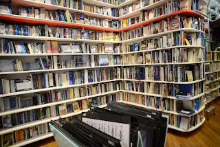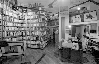 Tra la fotografia in bianconero scattata nel 1989 e quella a colori sono passati esattamente ventiquattro anni. Il fotografo, allora e oggi, è lo stesso, cioè il sottoscritto, e il locale, sempre in via del Vantaggio 19, accoglieva allora e accoglie oggi la Libreria Internazionale il Mare. Gli interni furono progettati da un grande amico della Libreria l’architetto Antonio Barrile, che ha sempre dato la sua impronta creativa alle diverse sedi de Il Mare a partire da quella di Piazza Farnese del 1975.