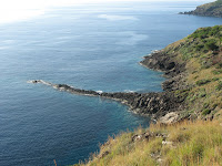 Il paradiso è là sotto, appena oltre quella lastra di cristallo liquido: sciami di alici, ricciole, piccoli tonni, murene, lampughe che nuotano quieti fra le gorgonie e i banchi di spugne gialle. Ogni tanto gli sciami si aprono, per lasciare spazio alle enormi cernie che avanzano sicure e placide, oppure ai guizzi dei piccoli barracuda che qui chiamano “aluzzi”. Non occorre nemmeno scendere nel profondo, per godere dello spettacolo. Basta pinneggiare quieti con la maschera appena sul pelo dell’acqua. Ed è tutto lì, un mondo magico e intatto immerso in un’acqua che è la più pura e limpida del Mediterraneo. Forse del mondo intero. Questo offre Ustica a chi sceglie di approdarvi.  |