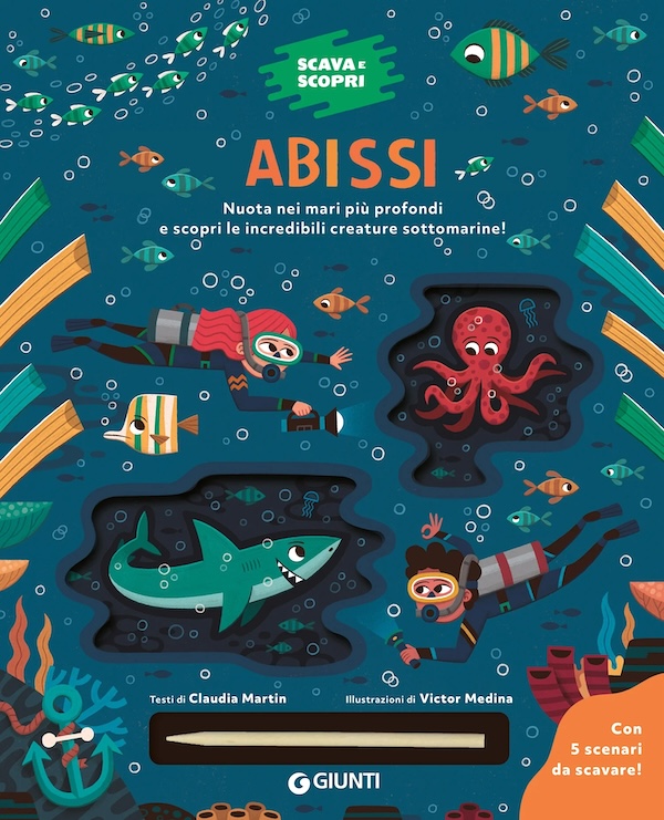 Diventa un oceanografo e scopri cosa si nasconde sotto la superficie del mare! Dalla superficie dell'acqua alle profondità oceaniche più oscure, esplora gli incantevoli paesaggi sottomarini e scopri affascinanti curiosità. Poi usa il bastoncino per scavare alla ricerca delle creature abissali più insolite in cinque scenari marini da grattare! Età: a partire dai 5 anni