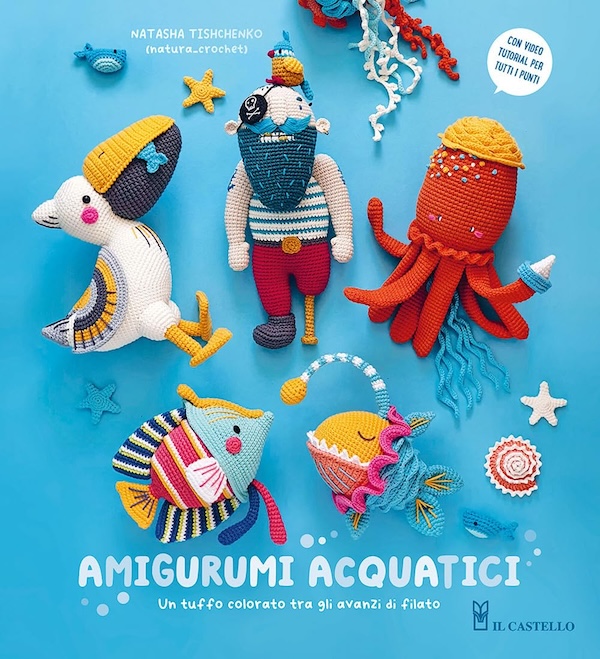Immergetevi nello sgargiante mondo sottomarino di Natasha Tishchenko (natura_crochet)! Gli amigurumi acquatici non sono mai stati cosi colorati e divertenti prima d’ora, e sarete sorprese di scoprire quanto sia facile realizzarli da sole. Natasha ha progettato una gamma di splendidi amigurumi che vivono sopra e dentro l’acqua, e voi potete felicemente tuffarvi nel loro ambiente marino unico! Andiamo in cerca di tesori sommersi in compagnia di Joni, il pesce rosso, o guardiamo il cielo notturno stellato con Boris, il pescatore. E che ne dite di preparare una torta di ciliegie con il pirata Valentin? Questo libro vi mostrerà un sacco di interessanti e adorabili personaggi che aspettano solo di poter sguazzare nella vostra scorta di filati! Con immagini dettagliate e video tutorial, le principianti e le esperte di uncinetto potranno creare un intero “acquario” tutto loro!
