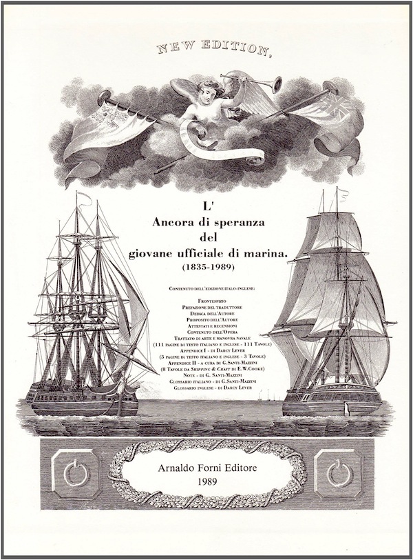 Splendido volume bilingue di arte navale, dove l`autore ha posto di fronte ad ogni pagina di testo una tavola illustrativa. L`opera è concepita come una "chiave" per comprendere l`attrezzatura e la manovra delle navi e come ausilio per facilitare l`apprendimento anche della tecnica al giovane ufficiale di marina o comunque alle persone inesperte.
