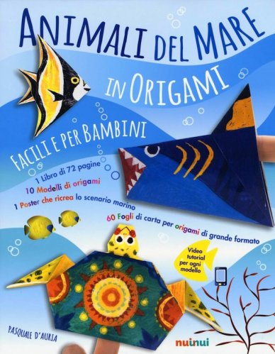 I più famosi abitanti del mondo marino, dallo squalo all’orca, dal pinguino all’aquila di mare, rivivranno nella fantasia dei bambini grazie a questo volume contenente diagrammi e istruzioni per realizzare i 10 modelli di origami facili e divertenti che li rappresentano. Ogni modello è corredato da un link e da un QR Code per collegarsi a un video tutorial con la spiegazione dettagliata dei vari passaggi. Alcuni di questi animali, come la tartaruga marina e il pesce spada, si trasformano in simpatiche “marionette da dito”: parte delle 60 carte per origami allegate ne riporta le fattezze e piegando correttamente i fogli (scaricabili anche via internet tramite link e riproducibili sulla stampante) le marionette prenderanno magicamente vita e si muoveranno nell’ambiente marino ricostruito nel poster allegato, che rende il gioco più realistico e suggestivo agli occhi dei bambini. Un modo in più per divertirsi.