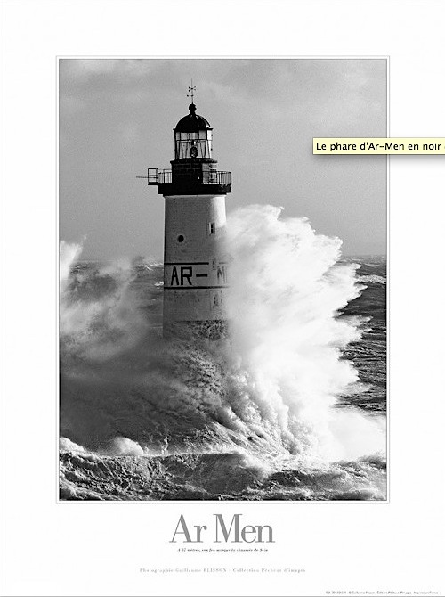 Le phare d'Ar Men, "Le Rocher" en breton, est un phare en mer au large de l'île de Sein, allumé en 1891. Du haut de ses 37 mètres, c'est le plus occidental de notre littoral. Ses gardiens ont quitté "l'enfer des enfers" lorsqu'il a été automatisé en 1990. La mer y est particulièrement déchainée, lors des coups de vents ou tempêtes. Imaginez le bruit des vagues qui s'écrasent sur sa tour... Bienvenue en Enfer !