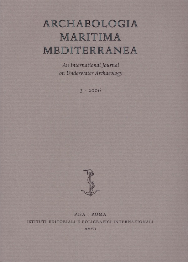 R. Petriaggi, Editoriale. Saggi: F. Cibecchini, H. Bernard, R. Bonaiuti, P. Drap, Il relitto medio-repubblicano di Cala Rossa (Porto Vecchio, Corsica). Primi risultati delle campagne di scavo; F. Cibecchini, C. de Juan, E. Vento, Il Bou-Ferrer: protezione e studio di un relitto del I secolo nelle acque di Villajoyosa (Alicante, Spagna); E. Scognamiglio, Baia sommersa. Alcune considerazioni sulla carta del Lamboglia (1959-1960); E. Scognamiglio, Archeologia subacquea a Miseno (Campi Flegrei); D. Cvikel, Y. Kahanov, The Dor 2002/2 Shipwreck; E. Galili, B. Rosen, One armed anchors from Israel; Z. Friedman, The Nile Mosaic of Palestrina: an illustration of shipbuilding traditions; S. Gluscevic, M. Jurisic, R. Sostaric, S. Vujcic Karlo, Evidence for the nutrition of sailors from the roman harbour at Zaton near Zadar. Acta Diurna, comunicazioni e aggiornamenti scientifici: P. Pomey, E. Rieth, L’archeologie navale. À propos de concepts et de méthodes; M. Bonino, Ricordo di Umberto Ucelli. Recensioni. Recapito dei collaboratori del presente fascicolo. Norme redazionali della casa editrice.