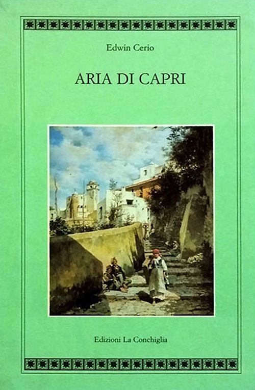 Aria di Capri vuol essere un vasto e articolato affresco letterario in cui non si vogliono esaltare gli stereotipi isolani come il cielo, il mare, la roccia, «ma l'umanità, il senso dionisiaco o, se si vuole, demoniaco dell'umanità: l'anima del sorriso di Capri» (dalla Introduzione dell'Autore). In quest'opera singolare e difficilmente classificabile, di volta in volta distaccata o faziosa, sarcastica o compassionevole, «uomini e cose, veri e immaginari, reali e irreali sono disintegrati nei loro atteggiamenti giocondi, esaltati nei loro aspetti lirici e ricomposti, integrati e, per un processo di sublimazione, trasformati in quella sostanza sapida, pura, sana di cui si nutrisce il senso della vita d'un paese...» (dalla Introduzione dell'Autore). Cerio sviluppa, così, una nuova realtà, una diversa dimensione, nella consapevolezza che Capri non è un luogo percepibile, comprensibile o giudicabile attraverso i comuni parametri, ma è, piuttosto, un luogo creato o continuamente ricreato dalle parole e dalle immagini prodotte da scrittori, poeti, artisti e uomini semplici, che hanno avuto, in ogni caso, la fortuna di vivere in questo luogo straordinario.