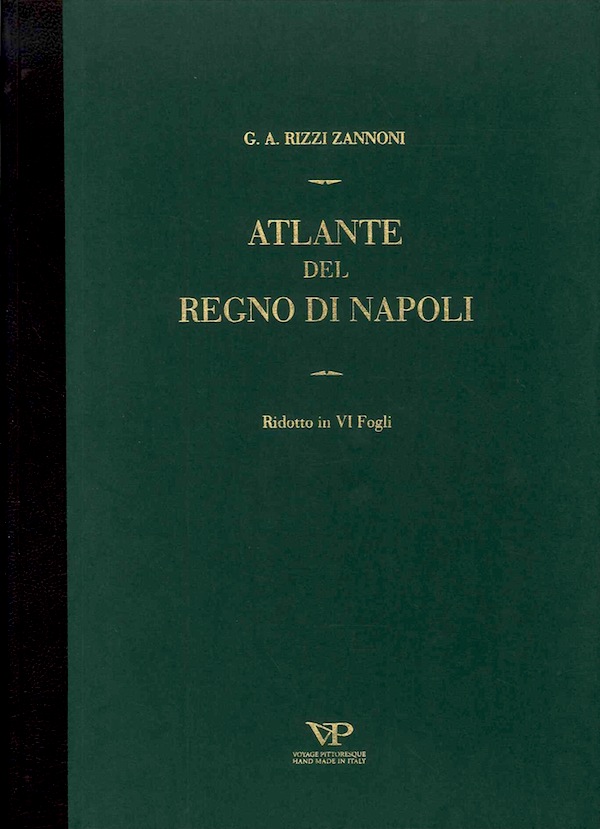 Libro molto particolare e prezioso, tirato in soli 500 copie nel 2010. Racchiuso in un’elegante confezione con un astuccio esterno è un oggetto dal design unico, contiene l’Atlante del Regno di Napoli ridotto in sei fogli nella versione corretta del 1816, ed un testo bilingue italiano-inglese di 30 pagine nel quale lo storico Vladimiro Valerio ne racconta le vicende e la realizzazione. Ciascuno dei sei fogli è accuratamente piegato in nove parti da 17x24 centimetri, quando è aperto ne misura 138x144! La tecnica di stampa è a incisione su carta pregiata di alto spessore. Fu realizzato per ordine di Sua Maestà Giuseppe Napoleone I, Re di Napoli e Sicilia, Principe francese e Grande Elettore dell’Imperio dal cartografo Giovanni Antonio Rizzi Zannoni, Direttore del Gabinetto Topografico di S. M.