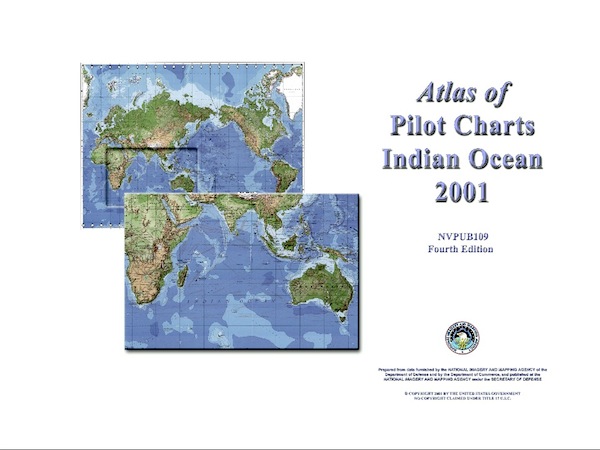 Atlas of Pilot Charts: Indian Ocean (PUB 109) covers the Indian Ocean from the southern tip of Africa, around India, to the eastern coast of Australia, including the Philippine Islands and New Zealand. The book is divided by each month of the year.