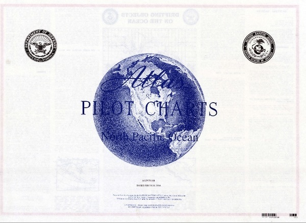Atlas of Pilot Charts: North Pacific Ocean (PUB 108) covers the North Pacific Ocean from the Bering Strait between Alaska and Russia down to the equator, including the eastern coasts of China and the Philippines and the western coast of North America. There is also information about drifting objects on the ocean. The book is divided by each month of the year.