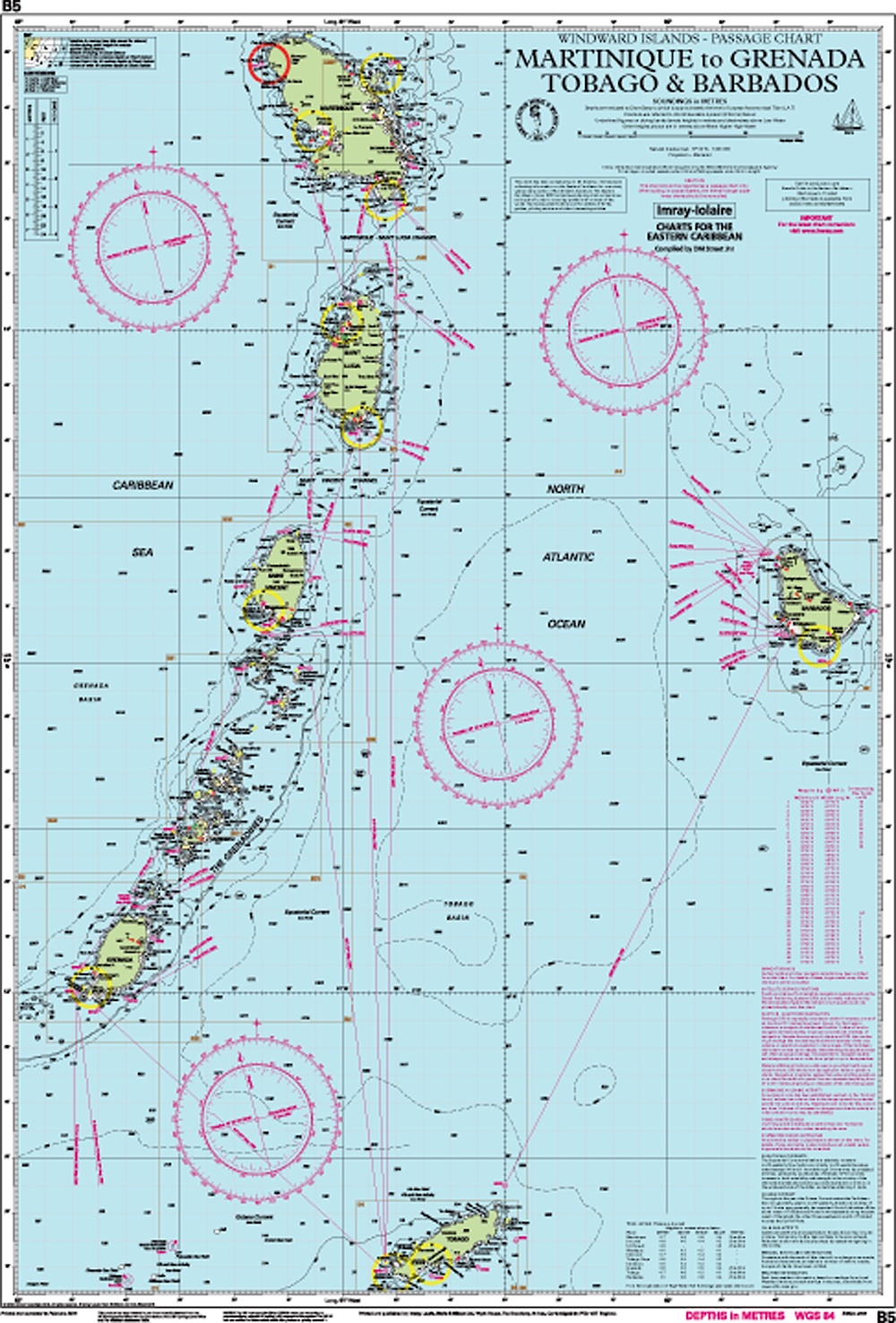 Carta Nautica B5 Martinique to Grenada Tobago and Barbados passage chart