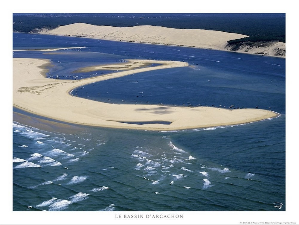 La Dune du Pilat, domine le Bassin d’Arcachon. Face à elle, le Banc d’Arguin classé « réserve naturelle », est un vaste banc de sable qui dessine un paysage en fonction des vents et des courants marins.