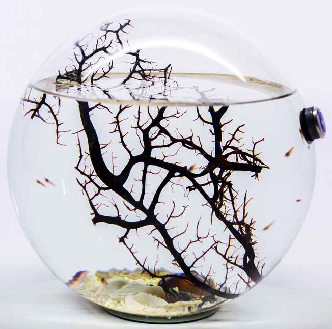 biosfera con gamberetti e gorgonia