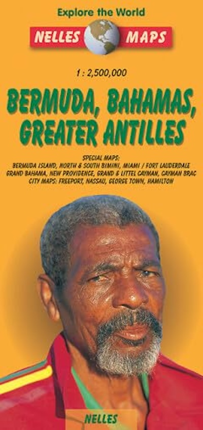 Bermuda, Bahamas, Greatern Antilles - carta turistica-stradale scala 1:2.500.000