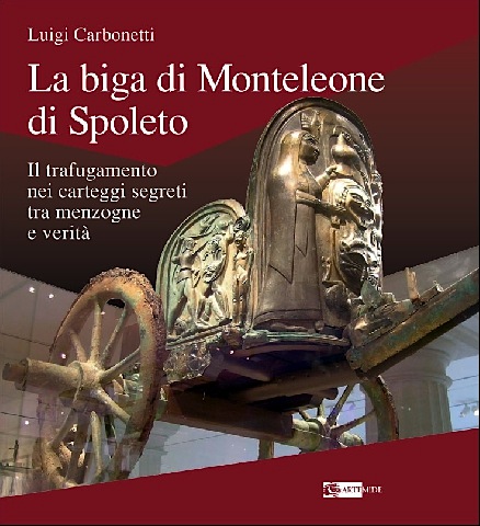 La Biga di Monteleone di Spoleto fu trovata nel 1902 e nello stesso anno trafugata, e portata al Metropolitan Museum di New York. Forte e reale, la verità sulla vicenda del trafugamento supera la fantasia dei gialli più avvincenti: si dice che J. P. Morgan abbia comprato il Carro ed organizzato il trafugamento insieme a trafficanti di opere d'arte e a logge segrete; alcuni funzionari dello Stato hanno cercato invano di impedirne l'espatrio; altri, probabilmente, lo hanno favorito. Il libro rende nota tutta la vicenda e tenta di avvicinarsi alla verità, sulla base dei documenti a disposizione e della ricerca svolta dall'autore, diventata via via una vera “indagine”. Con questo libro Carbonetti, oltre a contestualizzare la storia del Carro nel territorio Osco-Umbro-Etrusco, compie dettagliate analisi storiche e geomorfologiche e indaga sui fatti avvenuti all'inizio del secolo che hanno portato al trafugamento. Presentazioni; Introduzione; Prefazione; La Biga; Mons Leonis - Il leone degli Appennini; via delle pecore, la via del ferro; Morfologia e clima nella Valle del Corno; Bronzo, rame, stagno e ferro; Cronologia storica; Le descrizioni della biga; La tomba della celebre biga di Monteleone di Spoleto (Antonio Minto); Sepolcreto primitivo del Colle del Capitano a Monteleone di Spoleto (Antonio Minto); La scoperta di una tomba antichissima a Monteleone presso Cascia (Adolfo Morini); La Biga greca arcaica. Scoperta in monteleone presso Norcia in Sabina (Felice Barnabei); La Biga di Monteleone di Cascia in relazione alle origini e all’arte arcaica-italica (G.B. Compagnoni-Natali); La copia della biga a Monteleone di Spoleto; Prospetto comparato dei corredi funerari e resti ossei della tomba della biga; Appendice mitologica; Glossario. Ritrovamento e trafugamento; Premessa; Nuova luce sul trafugamento della biga. Atti, carteggi segreti, resonto giornalistici, storie finte, leggende, verità e mezze verità; Operazione recupero biga. L’azione giudiziaria del Comune di Monteleone di Spoleto; La Versione sul del Metropolitan Museum of Art sull’acquisizione del carro; Considerazioni sulla legittimità del possesso della biga di Monteleone di Spoleto; Brevi riflessioni, considerazioni legali e aspetti giuridici in merito alla legittimità del possesso della biga; Cronologia degli accadimenti dal 1902 ad oggi; Appendice; Premessa all’appendice; Persone coinvolte a vario titolo nelle vicende della biga; Cronologia del carteggio azione giudiziaria del Comune di Monteleone di Spoleto per il recupero biga (dal 2004 ad oggi); Carteggio azione giudiziaria operazione recupero biga; Cronologia del carteggio Archivio di Stato di Roma, carteggio Tito; Sereni e atti notarili (dal 1902 al 1907); Carteggio Archivio Centrale di Stato; Carteggio fornito da Tito Sereni; Atti notarili di Isidoro Vannozzi stipulati nel 1902; Interrogazione Barnabei; furto del Piviale di Ascoli e J. P. Morgan; Ernesto Biondi, i Saturnali, la biga ed il Met; Elenco dei Ministri della Pubblica Istruzione o Beni; Culturali e Ministri degli Esteri in Italia dal 1861 al 2014; Prefetti, sindaci e professioni a Monteleone dal 1901 al 1905; Valori delle merci, dei prodotti e costo della vita nel 1902; Calendario 1902: Marzo; Bibliografia.