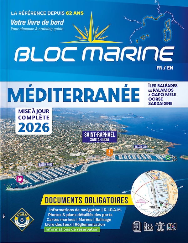 Le Bloc Marine, ouvrage de référence des plaisanciers, continue de s'enrichir et d'innover à chaque édition. Véritable bible de la navigation de plaisance, il propose des informations précises mises à jour chaque année sur les zones portuaires (accès, plans, équipements, contacts...), la sécurité en mer et la règlementation obligatoire à bord. Outre les fiches descriptives détaillées de chaque port, Ce live inclut un journal de bord, document obligatoire à bord, les plans des ports en WGS84 , le journal des feux ainsi qu'un atlas complet pour préparer vos navigations. Cette année, l'annuaire des marées en méditerranée s'enrichit et propose maintenant 3 ports de référence : Toulon, Sète et Bonifaccio. Vous apprécierez également les photos minutieusement sélectionnées pour illustrer le Bloc Marine, dont de nombreuses sont enrichies d'informations et de pictogrammes pour vous aider à mieux vous repérer en approche et une fois arrivé au port. Parmi les nouveautés cette année, chaque page de port est désormais dotée d'un QR code vous permettant d'accéder simplement aux informations nécessaires à la réservation de votre place de passage, et ce, sans frais intermédiaires . Allié précieux pour la préparation de vos croisières et escales, le Bloc Marine répond par ailleurs aux exigences règlementaires en matière de documents obligatoires à détenir à bord du bateau. Zone couverte: Méditerranée, y compris le Nord de l'Italie, Sardaigne, Nord-Est de l'Espagne et Îles Baléares Au programme de cette édition 2026 : L'actualisation des fiches ports, des plans et des cartes d'atlas, la mise à jour de la règlementation, un cahier spécial consacré aux nouvelles technologies : électronique - équipement - domotique et toujours plus de photos enrichies d'informations.