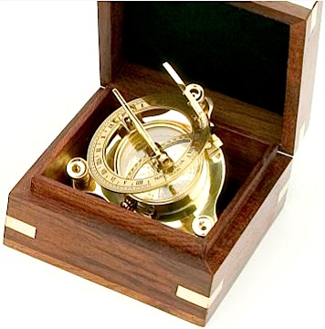 Bussola e meridiana piccola in ottone con scatola di legno e ottone
