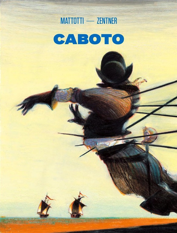 Caboto? Cabot? Gavotto? Caputo? Gaeta? Di colui che fu Piloto Mayor del Regno di Castiglia per trent’anni e a cui si attribuisce il merito di aver tracciato il primo mappamondo non sappiamo con certezza neppure il nome. Di sicuro l’uomo noto ai più come Sebastiano Caboto nacque a Venezia, figlio dell’esploratore Giovanni Caboto, intorno agli anni 1477–1484, fu presto condotto in Inghilterra e tra questa e la Spagna divise per tutta la vita i suoi servigi di cartografo ed esploratore. Alcuni dicono che fu un ciarlatano, bugiardo e intrigante. Fin da quando Jorge Zentner iniziò a lavorare al testo, gli fu subito chiaro che il “racconto storico” al quale si accingeva in realtà non poteva che essere un “racconto del mistero”. Scrivere una biografia era impossibile: sarebbe stato come tentare di navigare per mari ignoti con l’ausilio di poche mappe incomplete e imprecise. Ma della mancanza di testimonianze certe e coerenti, l’autore e l’artista decisero di avvantaggiarsi, scegliendo di porre proprio il mistero al centro della loro opera. Le riflessioni sulla possibilità di narrare questa storia prendono così corpo nel lento monologo del narratore alle prese con una biografia ricca di lacune, le stesse delle carte geografiche di fine XV secolo, in cui vastissime zone inesplorate erano ancora bianche o contrassegnate da un punto di domanda. Rendendoci partecipi del proprio flusso di coscienza, il narratore cerca di addentrarsi nell’oscurità della mente di Caboto e dei suoi uomini e al contempo si interroga sulla difficoltà di un racconto che richiede di compiere delle scelte, orientarsi tra fonti contraddittorie, tessere insieme le fibre di innumerevoli destini personali, senza alcuna certezza del confine tra la verità storica e la propria immaginazione. L’avventura intorno alla quale ruota il libro cominciò il 3 aprile del 1526, a Sanlúcar de Barrameda, con l’obiettivo di trovare un passaggio verso le Molucche, verso il territorio delle spezie. Le navi arrivarono alla costa del Brasile, all’altezza del Pernambuco, e qui Caboto riunì gli ufficiali della spedizione comunicando un cambiamento nei piani: voleva entrare, per esplorarlo, nel Río de la Plata. I motivi del cambio di rotta sono ignoti: alcuni parlano di un incidente di navigazione, altri di patti segreti con Re Carlo I, altri ancora vi leggono la febbre dell’ambizione economica, alimentata dai racconti di chi era sopravvissuto alle precedenti spedizioni. Ma, al di là della vicenda, a emergere da queste pagine è soprattutto il carattere forte ed enigmatico di Caboto, emblema di una civiltà imperialista e al tempo stesso novello Ulisse dantesco, incarnazione dell’ambizione e della sete di conoscenza. Le tavole, realizzate con pastelli e matite colorate, si richiamano ai dipinti del Cinquecento e del Seicento (in particolare, quelli di Caravaggio e Velázquez) e a opere cinematografiche come Aguirre, furore di Dio di Werner Herzog. In alcune immagini Mattotti integra fotocopie a colori di documenti storici, ritoccate in modo da ricreare l’aspetto polveroso degli antichi manoscritti. Dominano immensi paesaggi con una prevalenza di tonalità scure, che ci invitano a far saltare ogni punto di riferimento per addentrarci nel cuore di tenebra, abbandonarci a un viaggio senza ritorno verso l’ignoto.