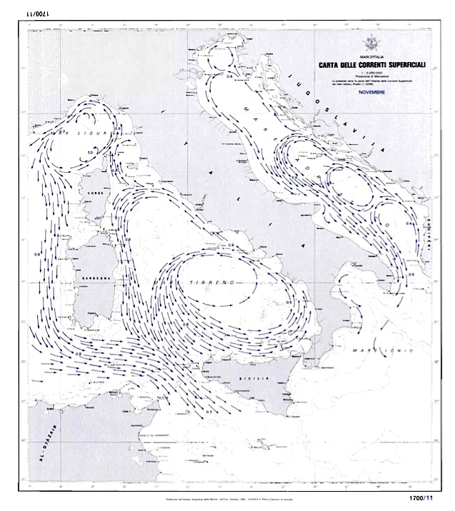 Carta delle correnti superficiali dei mari d'Italia - novembre