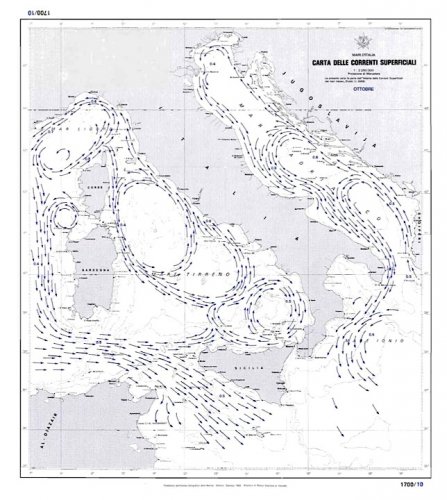 Carta delle correnti superficiali dei mari d'Italia - ottobre