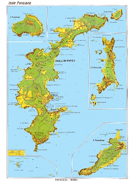 Carta stradale dell'isola di Ponza, Palmarola, Zannone, Ventotene