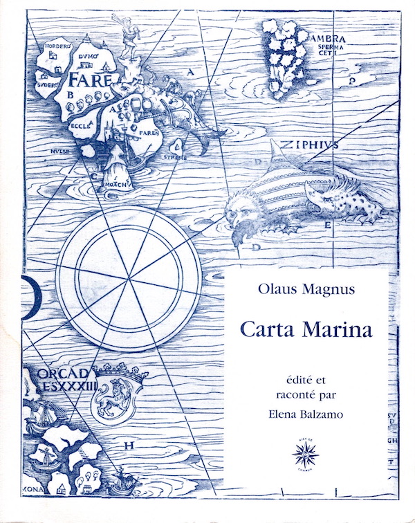 La Carta marina n'est marine que de nom, car elle représente non seulement les mers et les côtes, mais aussi l'intérieur des terres, tous les pays autour de la Baltique, tels qu'on se les imaginait au XVIe siècle : la Suède (avec la Finlande), la Norvège, le Danemark, la Russie, la Lituanie, la Pologne, l'Allemagne, la Hollande, mais aussi... la légendaire île de Thulé, les grands monstres marins et les serpents de mer fabuleux. Elle fut imprimée à Venise, en 1539, mais son auteur était suédois. Olaus Magnus (1490-1557), dernier archevêque de Suède sacré à Rome, dut quitter son pays devenu protestant pour vivre en exil, puis en Italie. Sa célèbre Carte fut ainsi élaborée et éditée à l'étranger; elle est à la fois une arme de combat, censée montrer aux Européens la valeur des territoires que Rome était en passe de perdre, un témoignage poignant de l'amour pour la patrie à jamais perdue et un chef-d'œuvre de la cartographie renaissante. Les créatures fantastiques: et les scènes de la vie quotidienne, les prodiges naturels et les personnages de l'histoire scandinave ancienne voisinent dans l'espace de la Carte et se croisent, formant une multitude d'histoires faits divers et récits fantastiques, observations ethnographiques et contes de fées... La Carte raconte les histoires, et Elena Balzamo (essayiste et traductrice, spécialiste des littératures scandinaves) raconte l'histoire de la Carte, la vie aventureuse de son créateur, le milieu dans lequel il évoluait, un milieu cosmopolite qui,. malgré les dissensions religieuses, était encore profondément uni : l'érudition était un bien véritablement commun, et le trésor de connaissances restait un et indivisible.