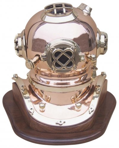 Casco da palombaro su base in legno