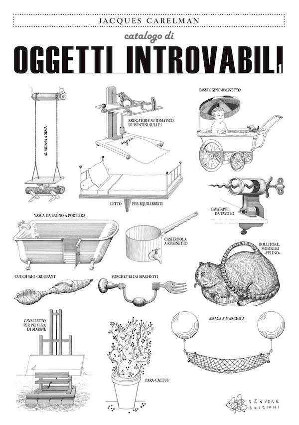 Catalogo di oggetti introvabili e tuttavia indispensabili a persone quali: acrobati, alpinisti, amici degli animali, antiquari, apicoltori, appassionati d’arte, arrotini, artisti-pittori, assaggiatori d’acqua, astronomi, attori, bagnanti, bambini ambosessi, barbabietolai, braccianti, burocrati, cacciatori, calzolai, camerieri, capomastri, disegnatori, donne delle pulizie, ecclesiastici, equilibristi, erotomani, estetiste, facchini, fachiri, falegnami, falsari, ferrivecchi, fisioterapisti, fresatori, fumatori di pipa, geometri, giardinieri, ginnasti, giocatori di carte, guardoni, guerci, hostess, illusionisti, impagliatori, impresari di pompe funebri, ingegneri elettro-acustici, innamorati…