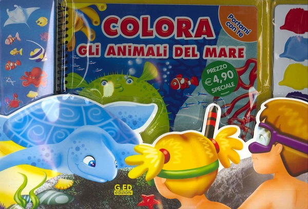 Una valigetta con all'interno un album da colorare, gli acquarelli e tanti stickers