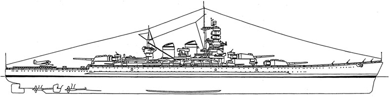 Varata il 9.6.1940 dai Cantieri Riuniti dell'Adriatico di Trieste, venne affondata il 9.9.1943 nel corso dei tragici avvenimenti che seguirono l'armistizio. Fu l'ultima corazzata italiana scesa in mare e l'ultima ad entrare in servizio il 14.6.1942. In ventitre tavole, in parte realizzate da Giancarlo Barbieri: piano di costruzione con la prora modificata, vista di fianco, vista dall'alto, castello, ponte di coperta con tutte le soprastrutture (1:200), n.7 sezioni trasversali, piattaforme del torrione, sistemazione delle imbarcazioni, elettroverricello per picchi di carico, bracci portaeliche (1:20), linee d'alberi (1:75), fumaioli (quattro tavole in scala 1:50) ed elica (ø 4,80 m - scala 1:10), nonché i piani originali in scala 1:10 della autovettura FIAT BN3 2800 imbarcata a disposizione dell'Ammiraglio e dell'autocarro FIAT 626 NL per i servizi a terra, entrambi collocati sul ponte. Nella documentazione è incluso un CD con diverse centinaia di foto del modello di Giancarlo Barbieri.
