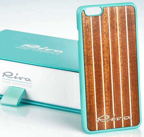Per il tuo smartphone, Riva Boutique ha creato una cover che si ispira alla gamma cromatica e alle essenze delle barche. Disponibile nei colori acquamarina e nero, la cover Riva è in legno di mogano con intarsi in acero, proprio come le coperte dei modelli più prestigiosi. Il logo Riva è in metallo satinato e intarsiato. Scegli per il tuo iPhone® una cover unica e originale, capace di trasferire nella mano, a ogni squillo, l’eleganza dei motoscafi più famosi del mondo!